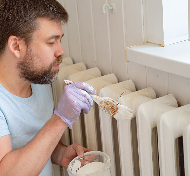 Heizkörper und -rohre mit einem herkömmlichen Rostschutzmittel, das für Heizkörper geeignet ist, grundieren.