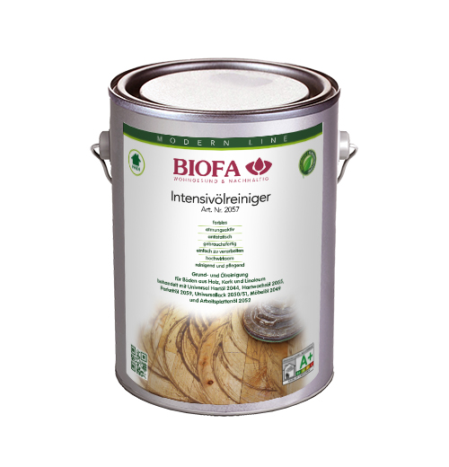 BIOFA Intensivölreiniger ist ein Grund- und Ölreiniger für Böden aus Holz, Kork und Linoleum, die mit Universal Hartöl 2044, Hartwachsöl 2055, Parkettöl 2059, Möbelöl 2049 und Arbeitsplattenöl 2052 behandelt sind.